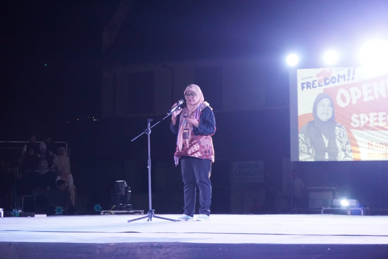 Di akhir sambutan, Nany menegaskan perlunya solidaritas lintas sektor untuk menjaga kebebasan pers, mulai dari aktivis lingkungan, pegiat HAM, komunitas adat, hingga seniman.