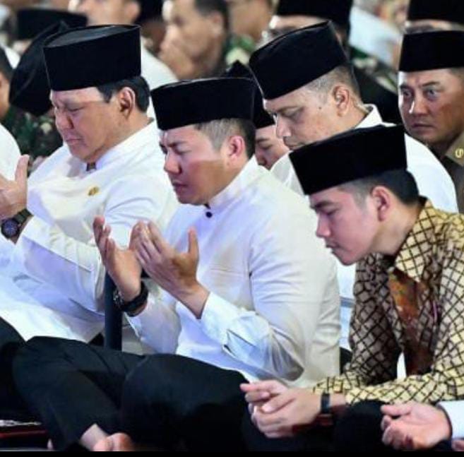 Tiba di lokasi pada malam hari (sekitar pukul 19.35 WIB), Presiden Prabowo turut duduk bersama para jemaah, bersila dengan khusyuk dalam suasana penuh hikmah.